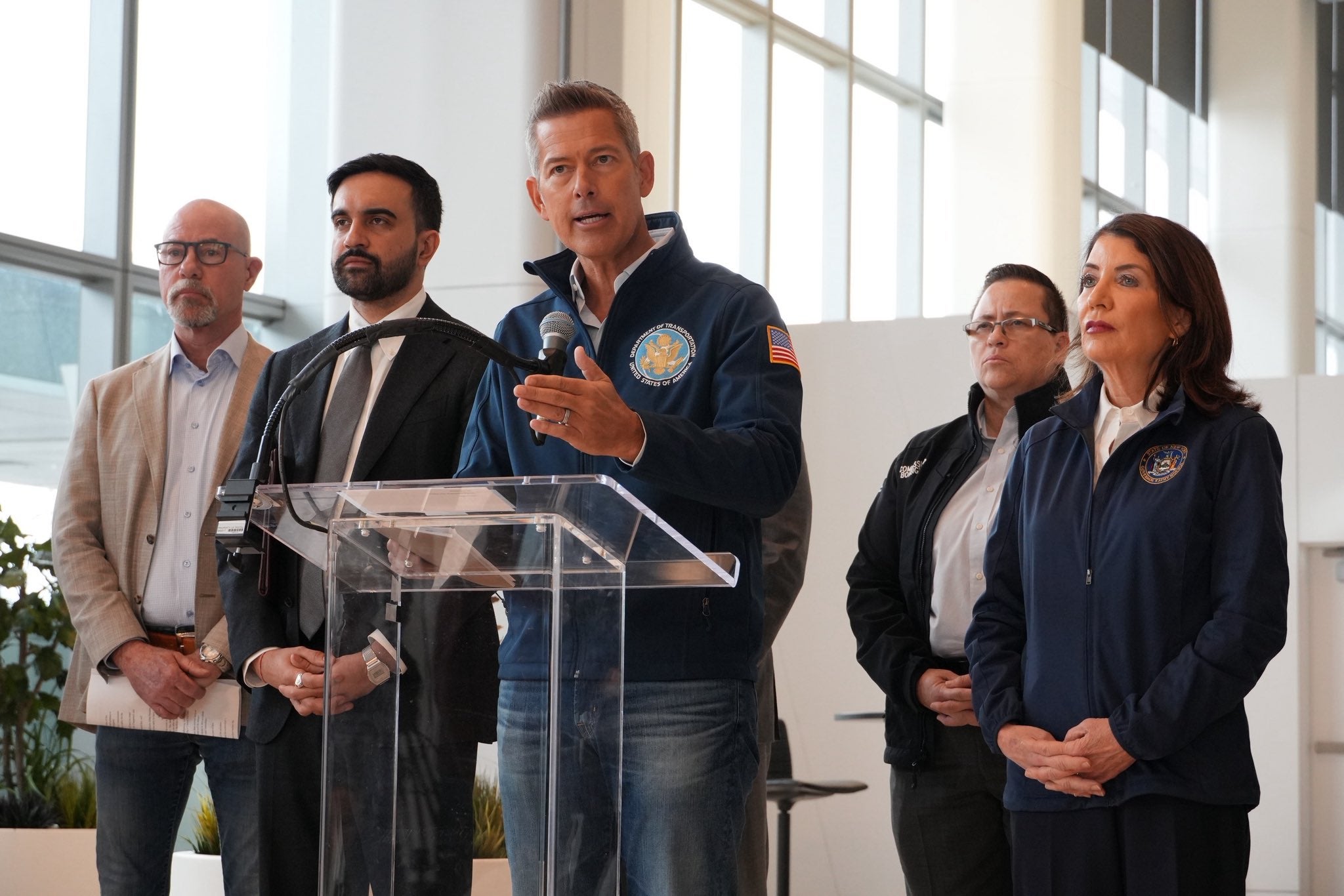 Trump administration Secretary of Transportation Sean Duffy visited LaGuardia International Airport on Monday, where he inspected the crash site with NTSB investigators and spoke alongside New York officials including Gov. Kathy Hochul.
