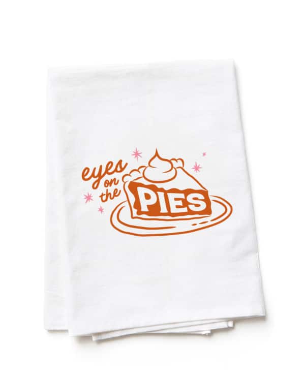 Eyes on the Pies features an original illustrated design with retro ad-inspired pie illustration and hand lettering. Crust me, you want a slice of this! During the preorder, we’re offering this design in two colors: light pink for Women’s styles, and soft taupe for Unisex styles (note the taupe color is ONLY available for preorder and will not be stocked afterwords, so if you want it, grab it now!)