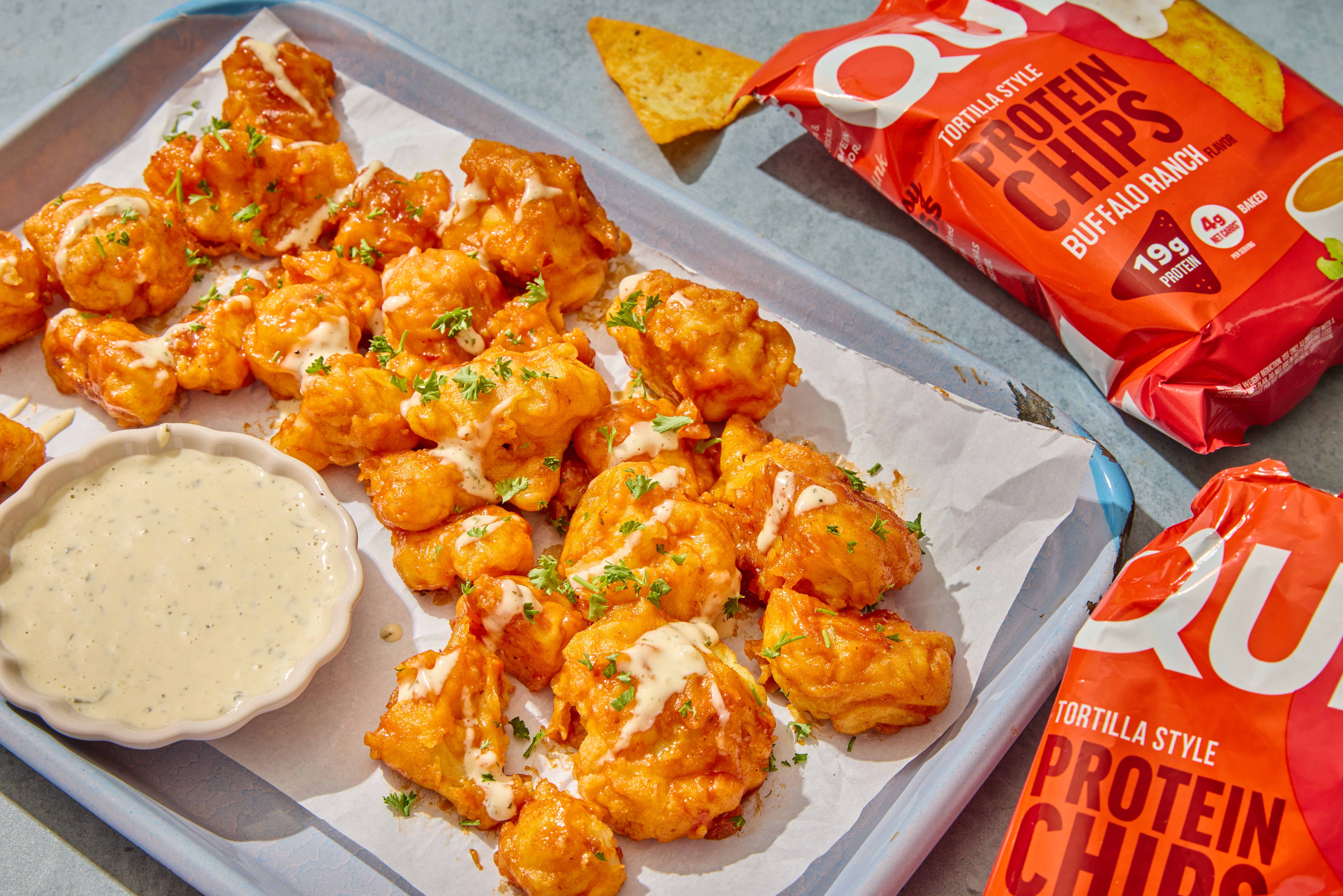 CHEAT ON GREASY GRUB WITH QUESTIFIED BUFFALO RANCH CAULIFLOWER PROTEIN WINGS. Bar food and salad bar food have been beefing since day one. But this recipe just called a truce—dialing up the macros for a protein powered collab that...