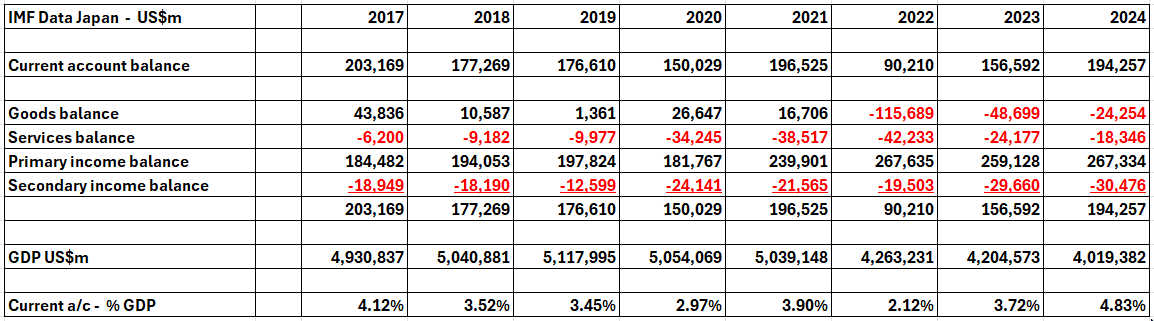 For long periods the Bank of Japan (the Central Bank) was known to pursue a policy of exchange rate stability such that movements in the US$/Yen rate occurred abruptly and the timing could be anticipated and this significantly reduced the exchange rate risk in the carry trade. Were a Hedge Fund to purchase a futures contract to protect against exchange rate shifts then the cost of the contract would be more or less the same price as the interest differential in the carry trade so it would not make sense. What has happened in Japan in the last year or two is that interest rates have risen such that the profitability of the carry trade has reduced. Does it matter if Hedge Funds start to abandon this strategy in terms of the overall economy. Obviously an abrupt shift (such as a sharp appreciation of the Yen) would put many carry trades underwater with the potential to bankrupt their sponsors with knock-on effects in the wider economy. Clearly, this is not going to occur in this case. The other carries are by domestic Japanese retail and institutional investors. They have been investing offshore for decades to profit from the interest differentials with other currencies such as the USD, CAD, AUD, NZD etc. In this case the Japanese investor is not “hedged” but does have a currency risk in the event of yen appreciation. In recent decades the Japanese economy has been categorized by: At the time of writing the Government needs either higher inflation or lower State deficits in order to bring the debt/gdp ratio down. Deficits are running at 5-6% of GDP with little prospects for a reduction and that means that the solution is higher inflation. This is pure arithmetic. Japan cannot realistically continue to let the debt/gdp ratio climb since it is already the highest in the world. The causes of low inflation in Japan has long been debated especially given that the Bank of Japan holds about half of all Government debt. That is, the Central Bank has been lending the Government money for its day to day expenses. In almost any other country what amounts to printing money would have led to a spike in inflation but this did not occur in Japan. What is peculiar to Japan is the high savings ratio which meant that people saved rather than spent, the Current a/c surplus which meant that surplus savings could find a home abroad and tight Government controls and subsidies which affect consumer prices. Inflation since the bubble burst in 1990 has often been negative though there has been an uptick in the last few years. Long term interest rates have started to climb from very low levels in the last year. Japan’s Current a/c surplus is mostly attributable to Primary Income surpluses (investment income). At end 2024 Japan had a positive Net International Investment Position of 85% of GDP (i.e. what it owns abroad vs what rest-of-world owns in Japan) as per the IMF data. To conclude: Read our full report at - https://www.marketresearch.com/Latin-Report-v4296/Economy-Japan-43065791/ Paul Dixon is the founder of Latin Report. His economics articles on a wide variety of topics are very widely read and are often found ranking in search results for months and even years after being first posted. Latin Report tries to make sense of the vast volume of information available to understand country economies. Our reports are written from a long term perspective and track a country's evolution over a number of decades. We mostly let the data tell the story with commentary on political events to illuminate features of the data. Latin Report aims to express views that hold their value over time and should therefore assist companies making long term decisions. This compares to competitors' reports based on current analysis which are subject to continual revision. https://latinreport.eu